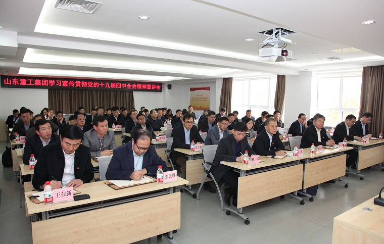 根據(jù)國資委統(tǒng)一安排部署,11月29日下午,省國資委黨委委員、副主任邵澤武同志到山東重工集團總部,為廣大黨員干部宣講黨的十九屆四中全會精神。