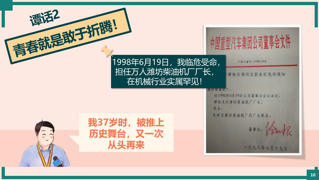 5月4日下午1:30,五四青年節之際,濰柴集團舉行了“譚談青春 譚談夢想”主題對話會,譚旭光結合自己45年的奮斗經歷,向青年員工分享了人生感悟。濰柴集團近兩年入職的2000余名大學生,通過線上+線下方式參與活動。