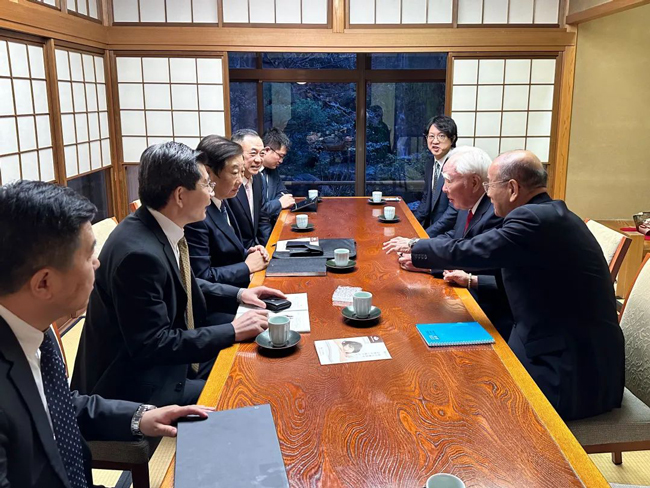 譚旭光參觀調研了鈴木汽車,與鈴木汽車原會長兼社長鈴木修老先生進行了深入交流探討。譚旭光對鈴木汽車百年發展歷史產生了濃厚的興趣,對工匠強企精神表示高度認可。